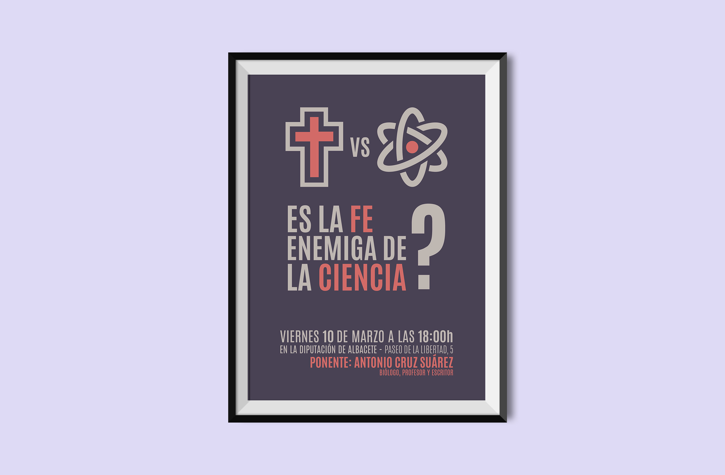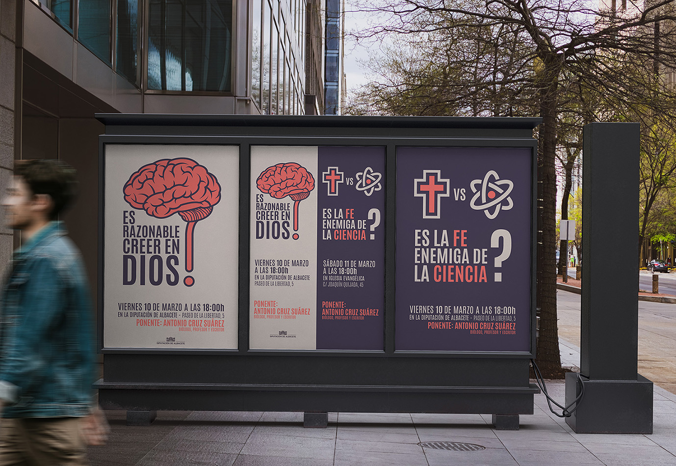 Diseño carteles para promocionar unas charlas organizadas por la Diputación de Albacete y la Iglesia Evangélica Bautista de Albacete impartidas por el biólogo, profesor y escritor Antonio Cruz Suárez.