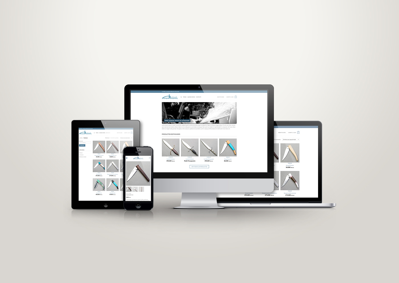 Tienda online del artesano cuchillero de Albacete Juan Luis Vergara. Diseño limpio e intuitivo. Responsive para su visualización y funcionamiento en cualquier dispositivo. Fotografía de las cada una de las piezas.
