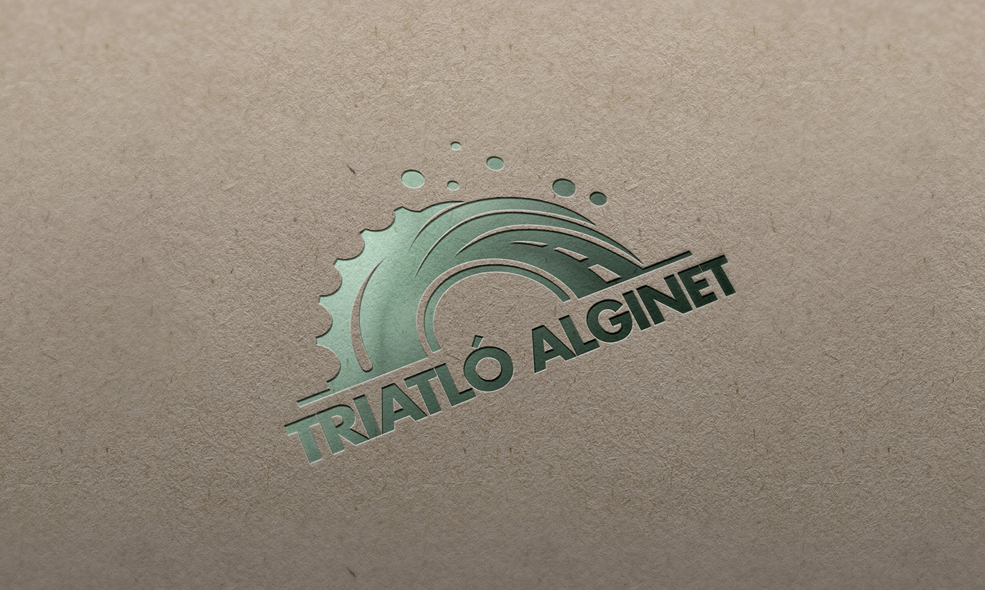 Diseño de logotipo y la equipación de un equipo de triatlón de la localidad valenciana de Alginet. El logotipo refleja las tres pruebas en la que consiste esta disciplina atlética. Sobre una semicircunferencia con forma de plato de ciclista se identifican los piñones de una bicicleta que se funden con las olas de la natación y culmina en la carretera del atletismo.